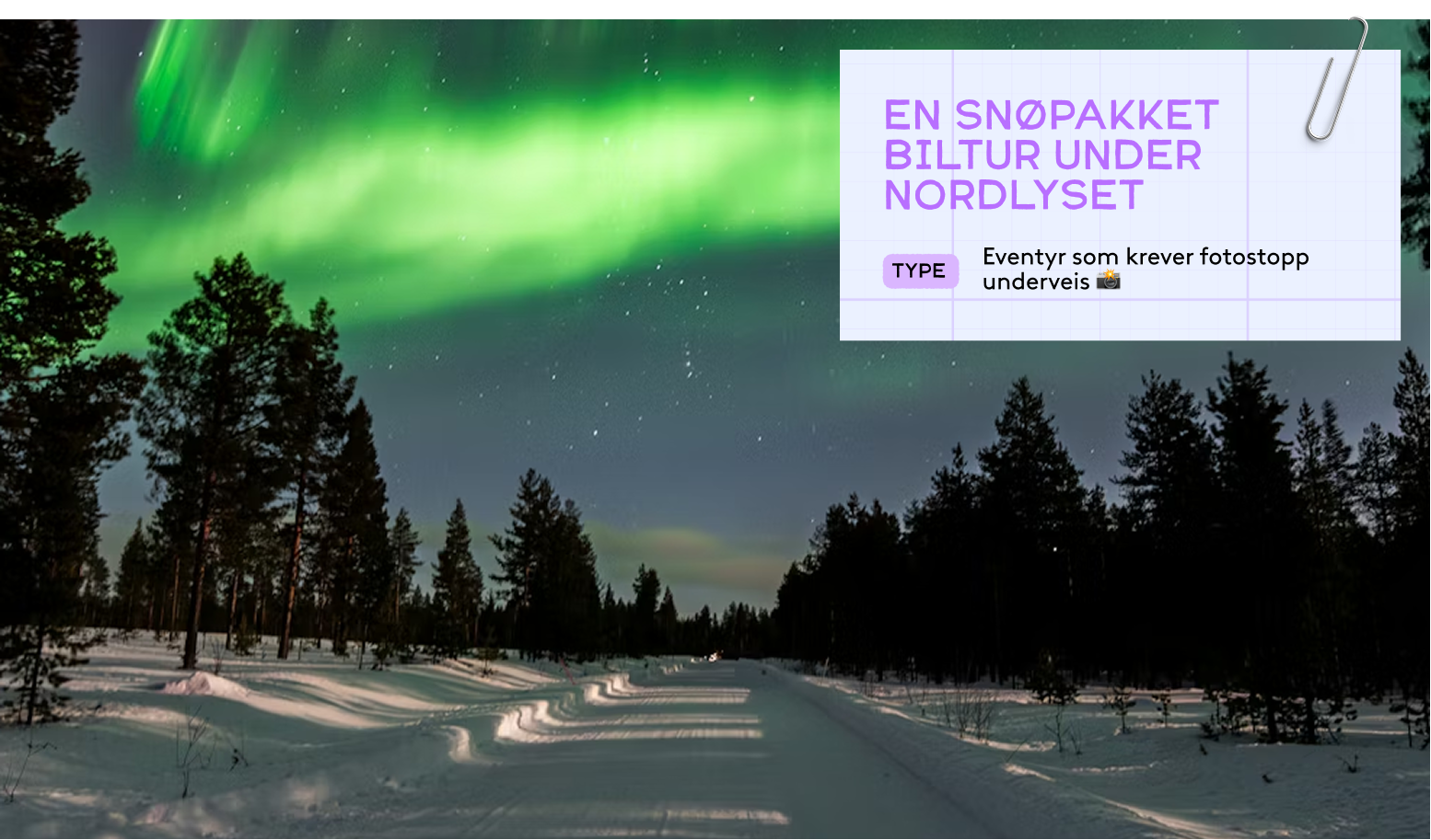 Har du lyst på et magisk vintereventyr? Da vil vi foreslå en uforglemmelig biltur i Nord-Norge: en opplevelse for deg som vil ha endeløse hvite landskap, beroligende stillhet og en himmel som lyser opp uten forvarsel.