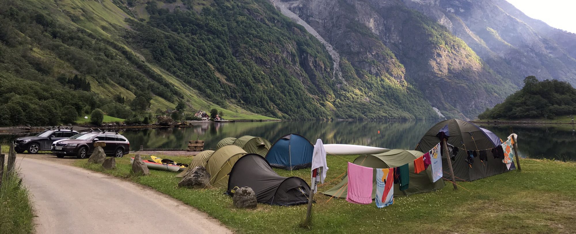I Bakka, kun noen kilometers kjøring fra Gudvangen, finner man vakre Dyrdal Gard. Her kan du velge og vrake i flotte teltplasser langs fjorden. På området finner du også WC, dusj og et enkelt kjøkken som kan benyttes av alle gjestene. Vertene er utrolig gjestfrie og man møter på andre reiselystne fra hele landet. Kanskje du også skal finne frem teltet og rulle ut liggeunderlaget i sommer?