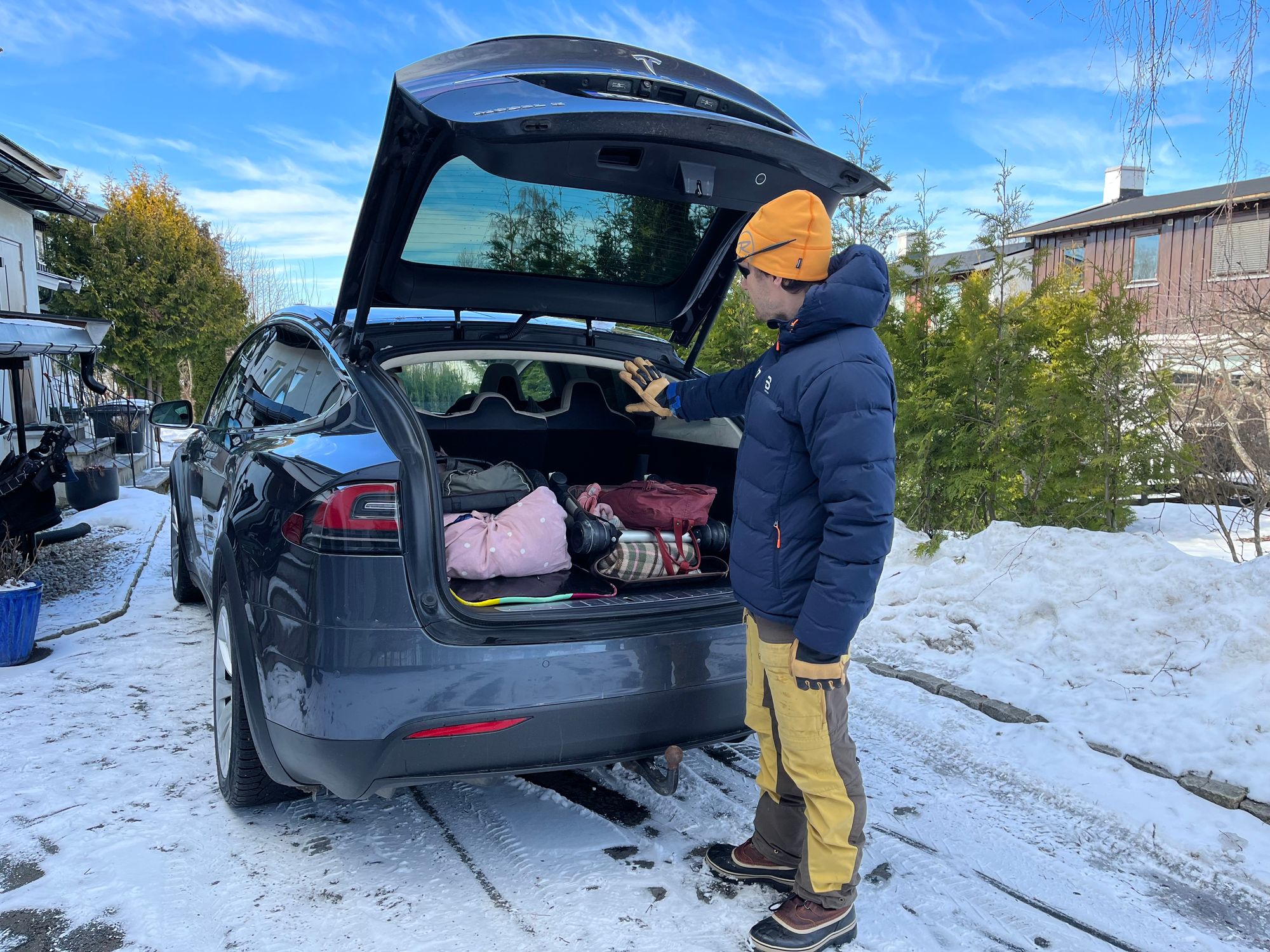 En romslig bil vi er blitt gjort oppmerksomme på er Teslas Model X. Vi bestemte oss derfor for å leie den på Getaround for å virkelig teste hvor god kapasiteten den har, både i baksetet og i bagasjerommet. Det er mange varianter å velge mellom på plattformen og de koster alt fra 2000 til 4000 kroner for en helg.